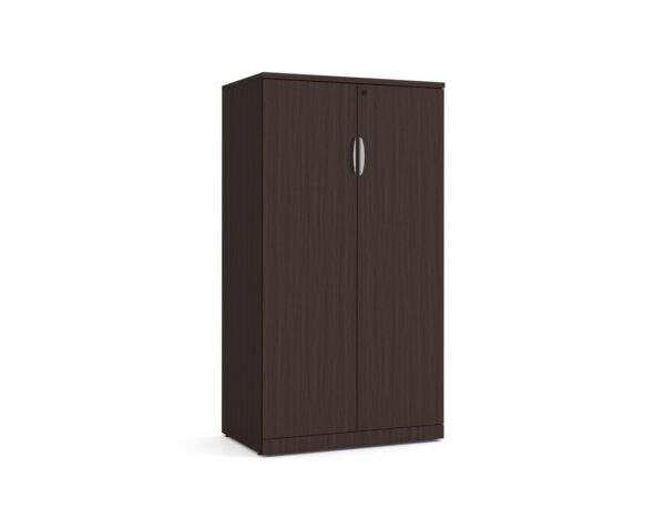 Also Available with non-locking glass doors Glass Doors the 65″ Locking Double Door Storage Cabinet is designed with the flexibility to tackle just about any of your storage needs, this storage cabinet is equipped with 4 adjustable shelves and can include a hang rod to store coats.