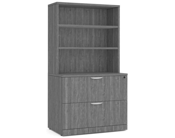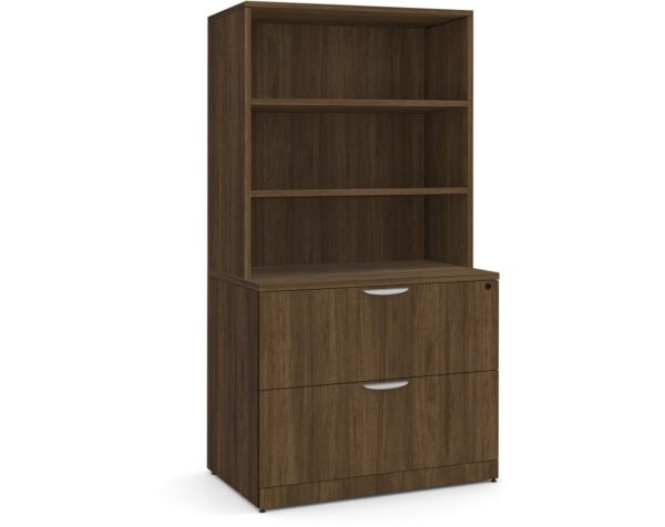 The 2-Drawer Lateral File with Hutch offers a combination of open and closed storage. Ideal for private office and home office applications, this storage unit allows you to store files and paperwork, and display books, decor, above to personalize your space.