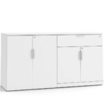 Make your workspace feel effortlessly organized with smart storage that works as hard as you do. The 38″H Locking Double Door Cabinet with Buffet Drawer keeps everything within reach when you need it, and neatly tucks everything away when you’re all done.