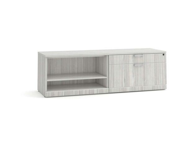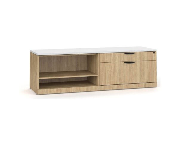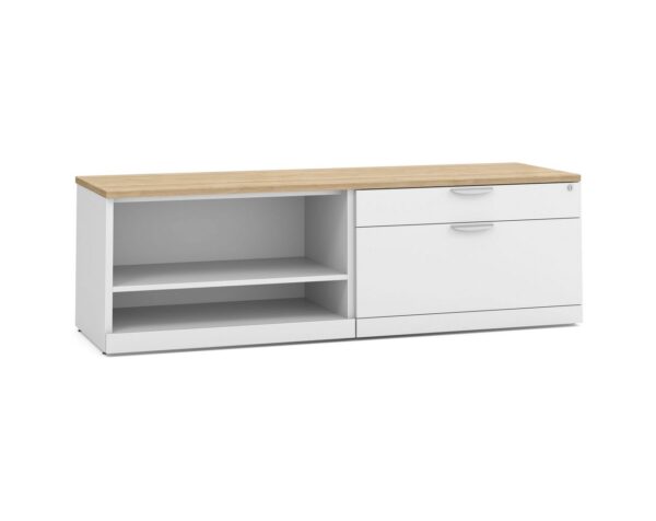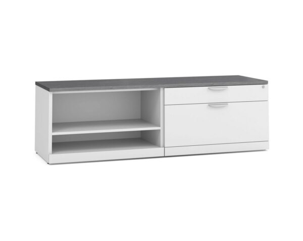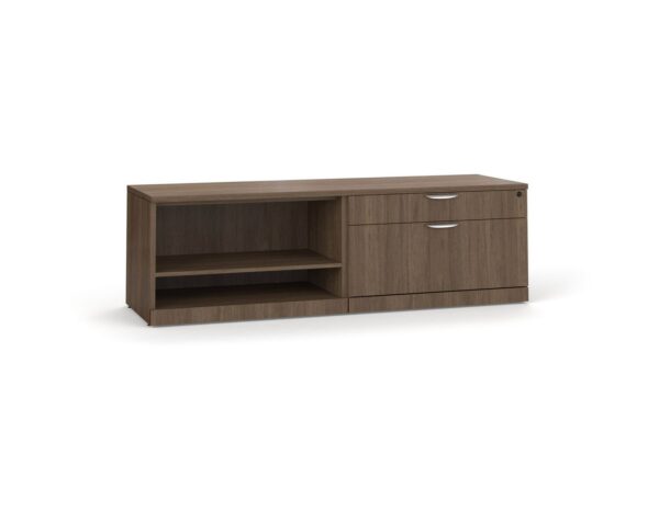 The Elements Storage Cabinet and Bookshelf Credenza extends the work surface and storage in your office space. Featuring two laminate doors that are equipped with factory-installed locks, this storage credenza keeps your items secure and easily accessible.