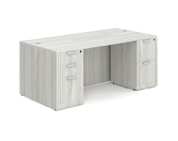Features two full storage pedestals, One Box/Box/File Storage Pedestal, and One Box/Box Storage Pedestal.