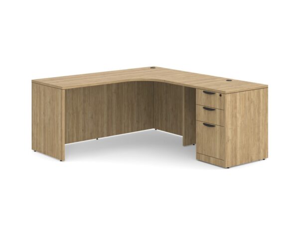 - L Shaped Desk – Radius Corner – Right Hand Return – Create a spacious workspace where you can be your most productive and efficient with the L shaped Desk – Radius Corner – Right hand return. Featuring a reversible return and attached storage pedestal, this L shaped desk gives you more than enough space to house your tech, paperwork, and more .