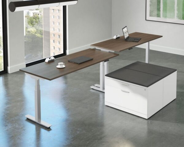 Adjust from sit to stand desk height throughout the day to get work done in comfort and style.