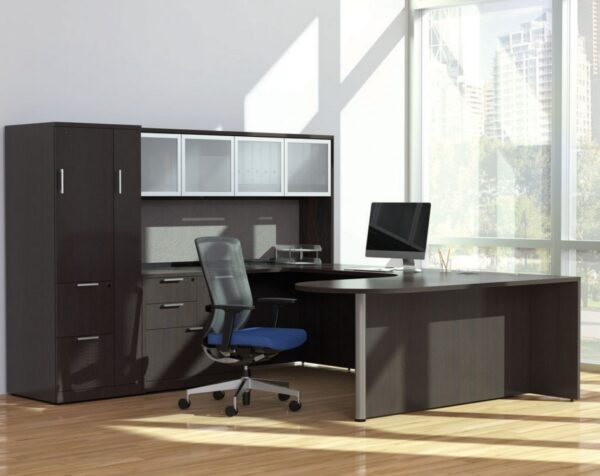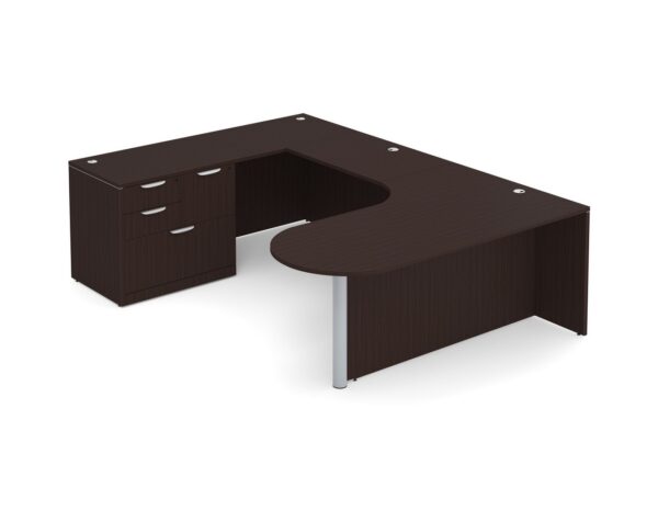 - U Shaped Desk – Left Hand Bullet Return – This u shaped desk ensures you have more than enough space for your tech, decor, and paperwork, meaning you can keep the bullet portion of your desk clear to host colleagues and clients.