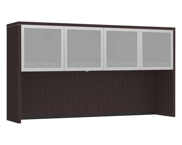 - Classic Desk Hutch with 4 Glass Doors – This hutch easily mounts onto your desk keeping your most important items in reach, without taking up valuable floor space.