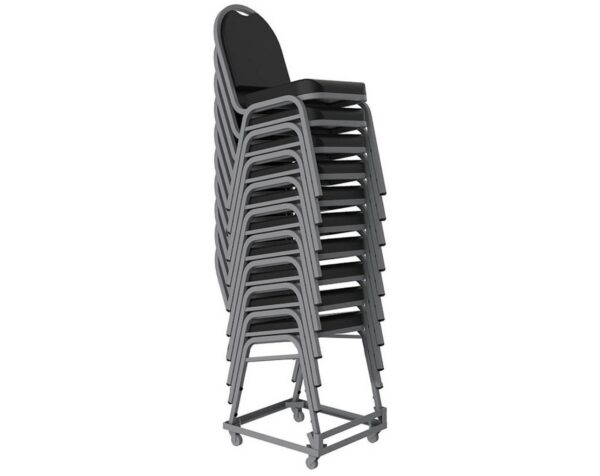 Simply designed with a black metal frame and patterned fabric, the Fabric Stacking Chair fulfils seating needs with strength and durability. Featuring extra thick foam padding in the seats and a cushioned back, this chair pairs comfort with function.