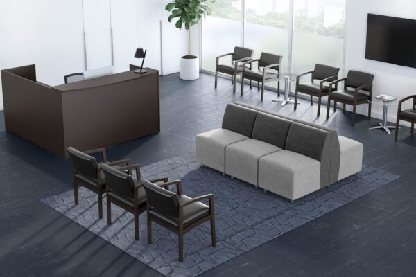 Distinguish your office and reception areas with the comfortable Jackson Guest Chair. Made with black synthetic leather that’s easy to maintain and paired with an Espresso, Modern Walnut or Newport Grey wood frame, this guest chair is perfect for a timeless and contemporary look.