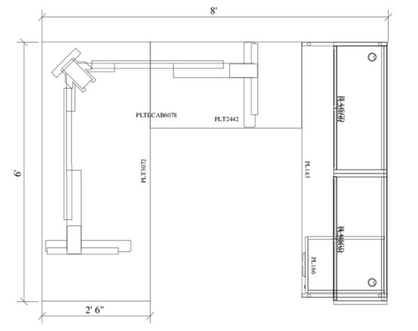 Overall Dimensions are 72″ x 96″ , Desk 30″ x 72″, Return 24″ x 42″.